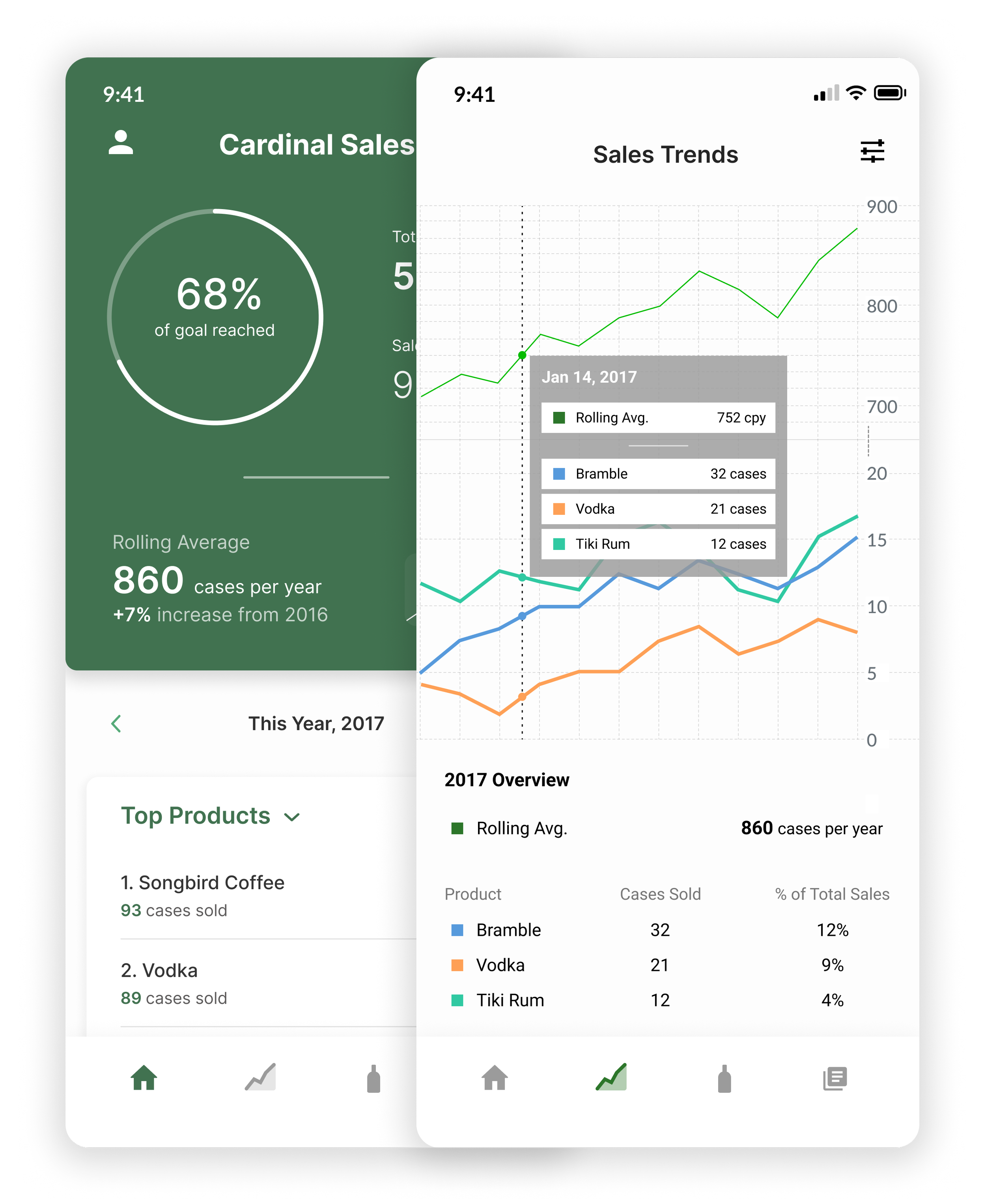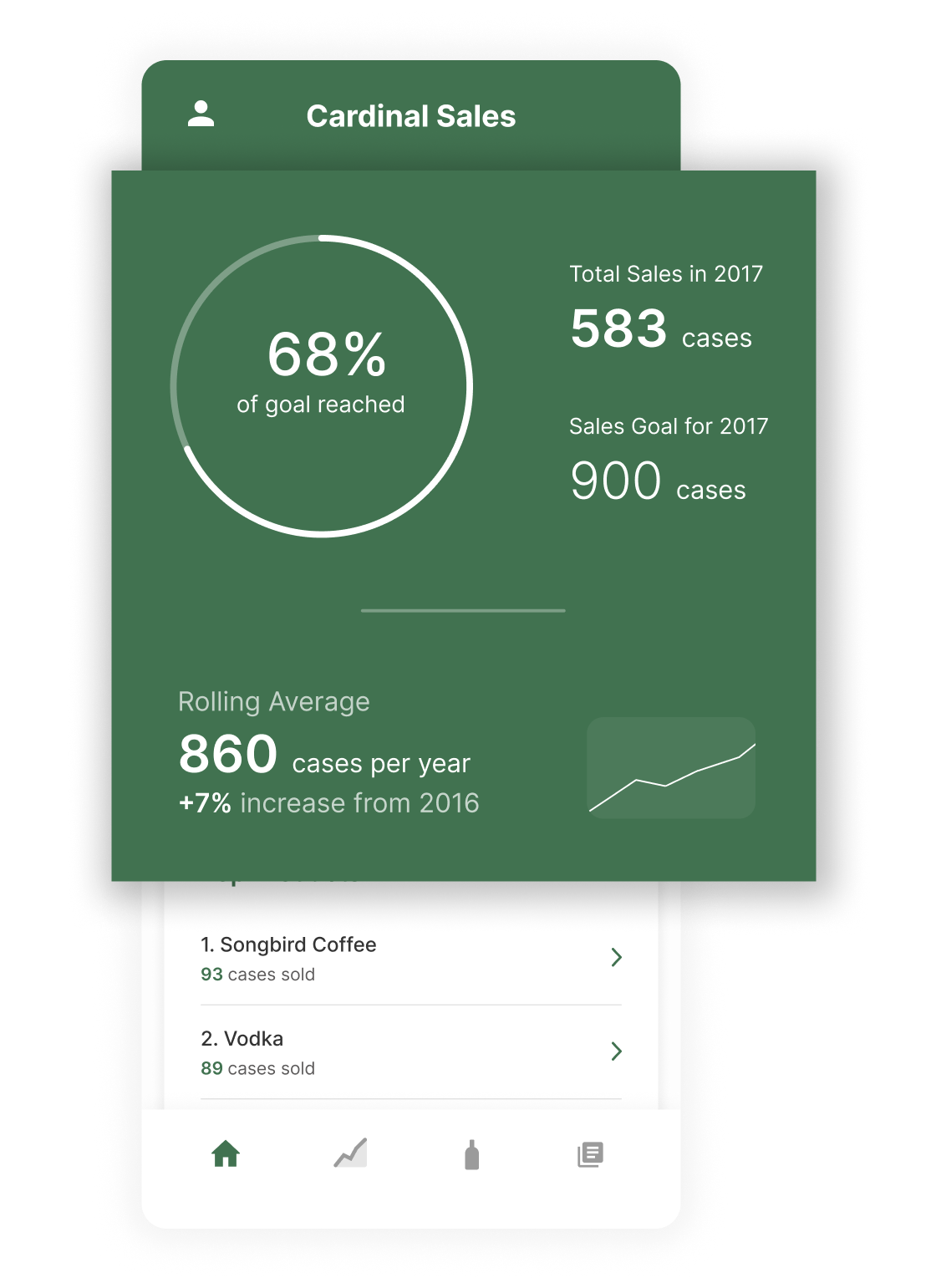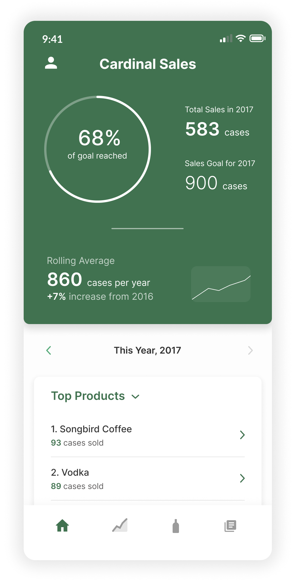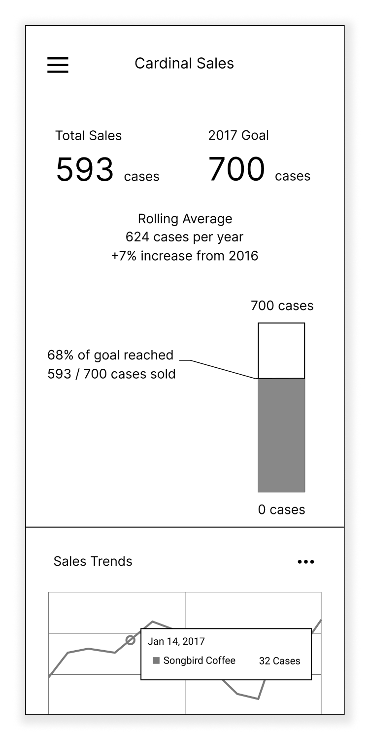 We designed Cardinal Sales, a web app that processes and presents sales data to the user in a comprehensive and informative way. The app provides an intuitive user experience that includes clear and detailed data visualization and customization options. It also enables users to quickly set sales goals and see how close they are to achieving those goals.