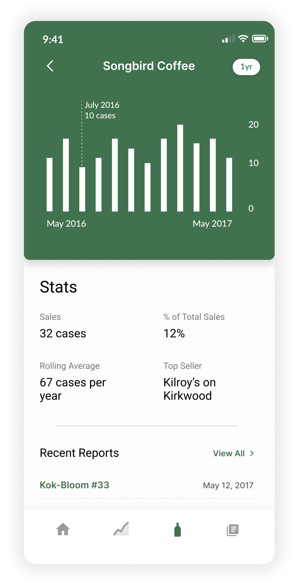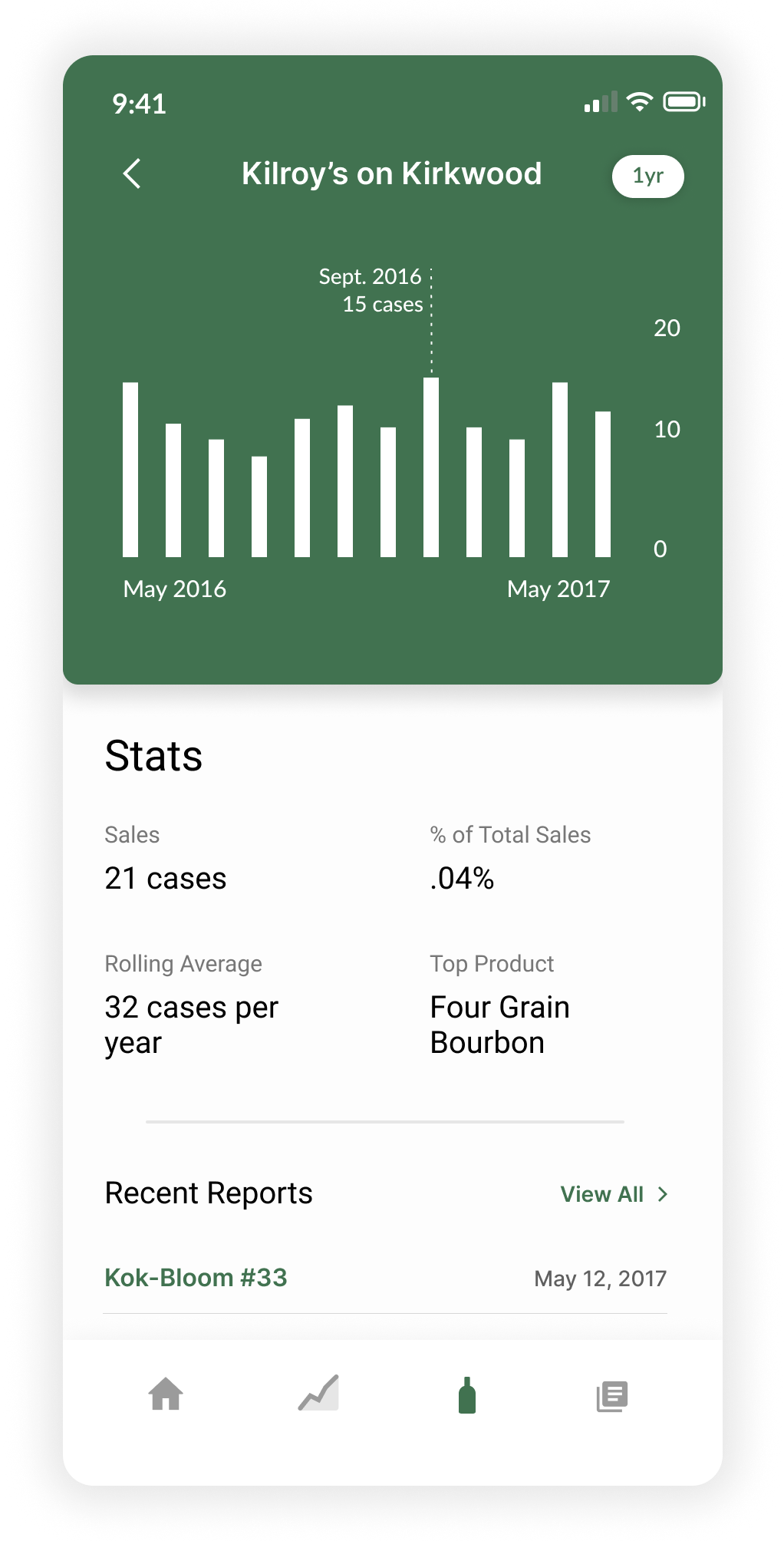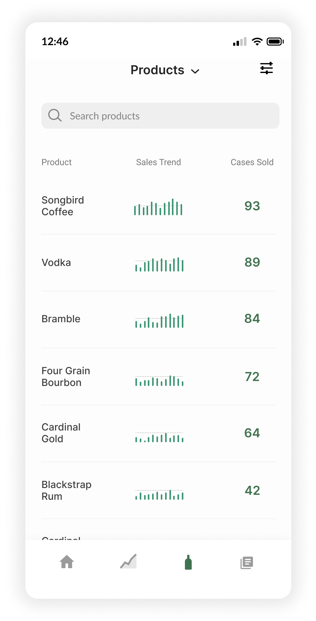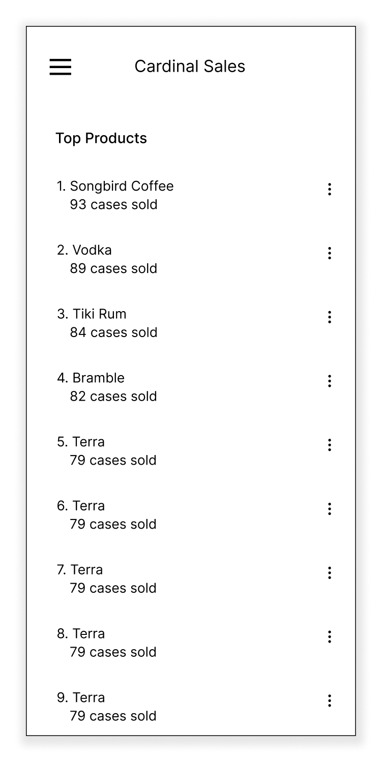 Stakeholders at Cardinal Spirits needed a way to track the sales made by the company, and they needed a clear way to see and understand the sales data in order to help them make decisions for the company’s products and business operations. Before developing the app, stakeholders were relying on spreadsheets to track sales data, and they found that spreadsheets were frustrating and arduous to use.