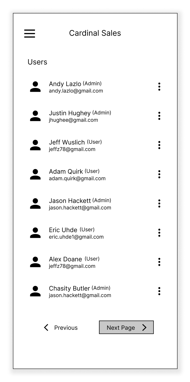 We created a survey to learn about the different ways users currently track sales and how they feel about these methods. After the surveys, we conducted semi-structured interviews with the stakeholders to dive deeper into the current methods being used to track sales, and what exactly users want in a sales app. It was important for us to understand why users felt that their current system for tracking sales needed to be improved.
